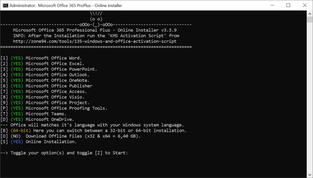 - Chạy file Office 365 Setup, ra giao diện dưới thì nhấn phím Z
